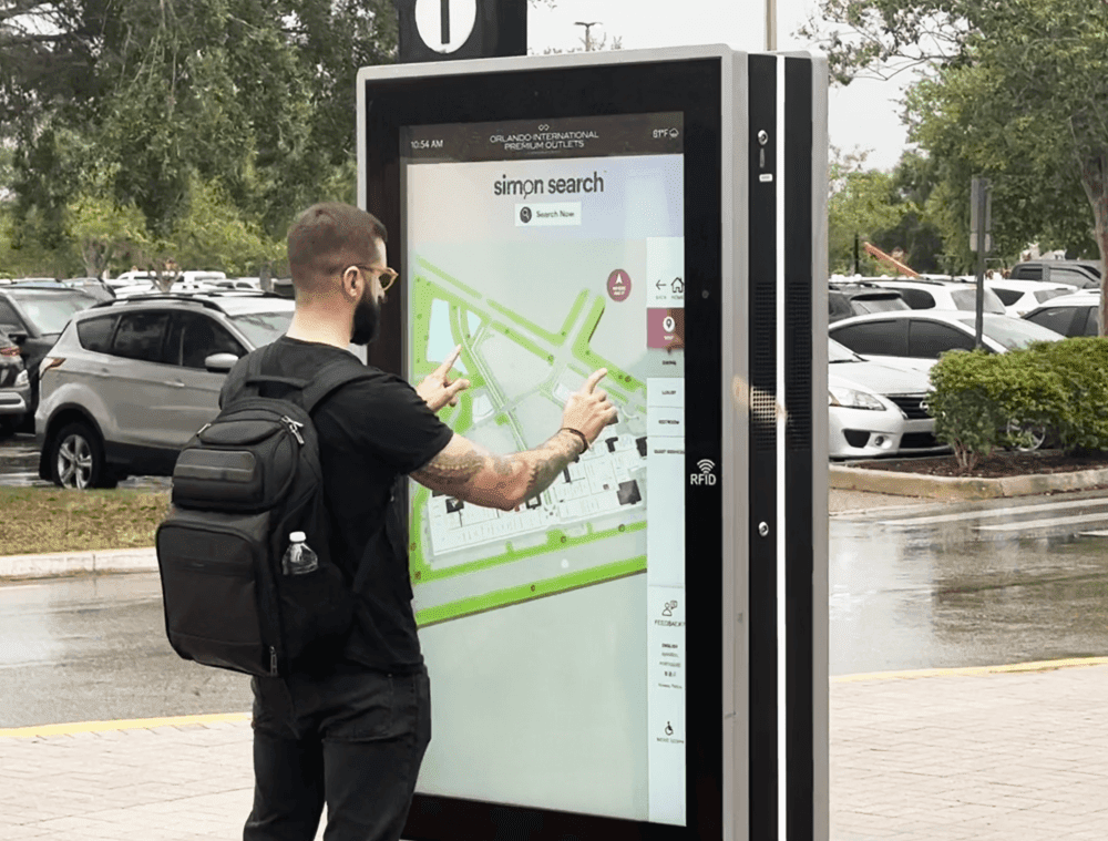 Touchscreens can be used in sport stadiums or large events to help customers find their desired locations.