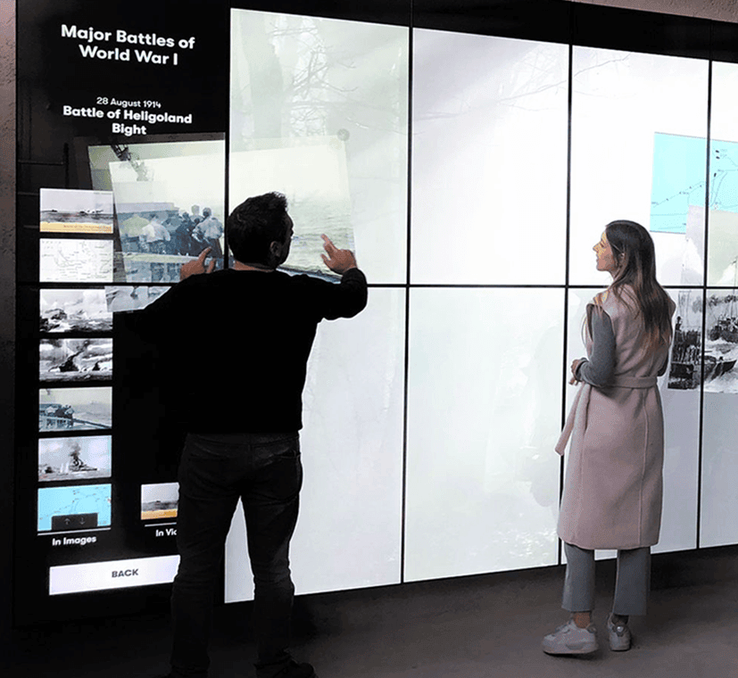 The museum commissioned a large, interactive centerpiece to enrich visitor engagement. The brief required a highly responsive multi-touch video wall, able to run in a bright public space, support multiple simultaneous users, and be installed and operational quickly with minimal downtime. DISPLAX delivered a modular 8×2 TILE Pro solution that met these needs and went live the same day.